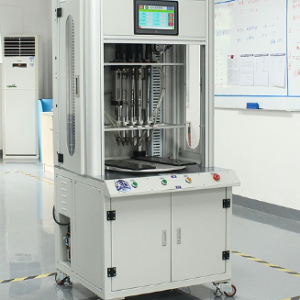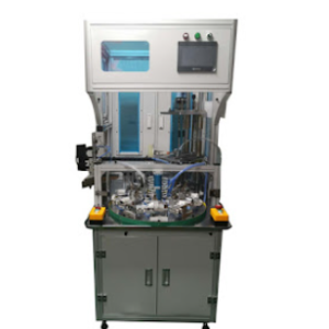 一、产品简介 转盘式自动打螺丝机可同时锁付两颗及两颗以上螺丝的产品。具有效率高、操作简单等特点。螺丝间距可调(根据客户产品范围定制)。相比固定多轴的可采用2个以上工位,在锁螺丝的同时,人工上料机械手自动卸料。锁付、上料、卸料、检测还可增加自动上螺母或其他功能同步进行,节省取放产品时间,效率更高。 二、产品优势 1、通过凸轮分割器实现夹具循环圆周步进流水作业,放入产品、机器组装、检测、送螺钉、 锁螺丝,自动卸料等工作同步进行,机器:效率高!速度快! 2、效率1200pcs产品/hour或更高,可同时拧紧多颗螺丝,可代替多名工人。 3、可同时锁付2~12颗螺丝,供料器2~12个螺丝通道可以任意开启和屏蔽! 4、对于螺丝孔距较小的产品,可以分两个工位拧螺丝,弥补多头自动拧螺丝的不足。 5、适合批量化生产的产品,可以根据每个客户不同产品量身定制,提供最佳解决方案! 6、电批通过万向传动轴传递扭力螺丝,螺丝孔位调整方便,可更换产品品种。 7、机器操作简单,员工迅速掌握操作和调试。 8、自动卸料,良品、不良品自动分检。 三、使用条件 1、适用螺丝范围:M1-M8其中一种 2、使用的螺丝头花型如:一字、十字、三角、梅花、内六角、H头等。 3、使用的螺丝表面处理方式如:电镍、煲黑、镀彩锌、镀铜等。 4、使用的螺丝材质(不受材质限制):铁、铜、不锈钢、塑料、自攻螺丝等。 5、锁螺丝产品的材料如:塑胶、铁、铝等。 四、设备用途 1、广泛应用于各个行业,例如木塑、通讯、电子、电器、玩具、汽车配件、照明、五金配件、电动车、电源、通讯等行业。 2、适用于产品单批次订单量大更换产品频率较少,一个产品有两颗或两颗以上螺丝产品。